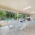 Externally, the tiled entertaining area runs the full length of the living room, providing the perfect space to relax, entertain, and enjoy the pool.
