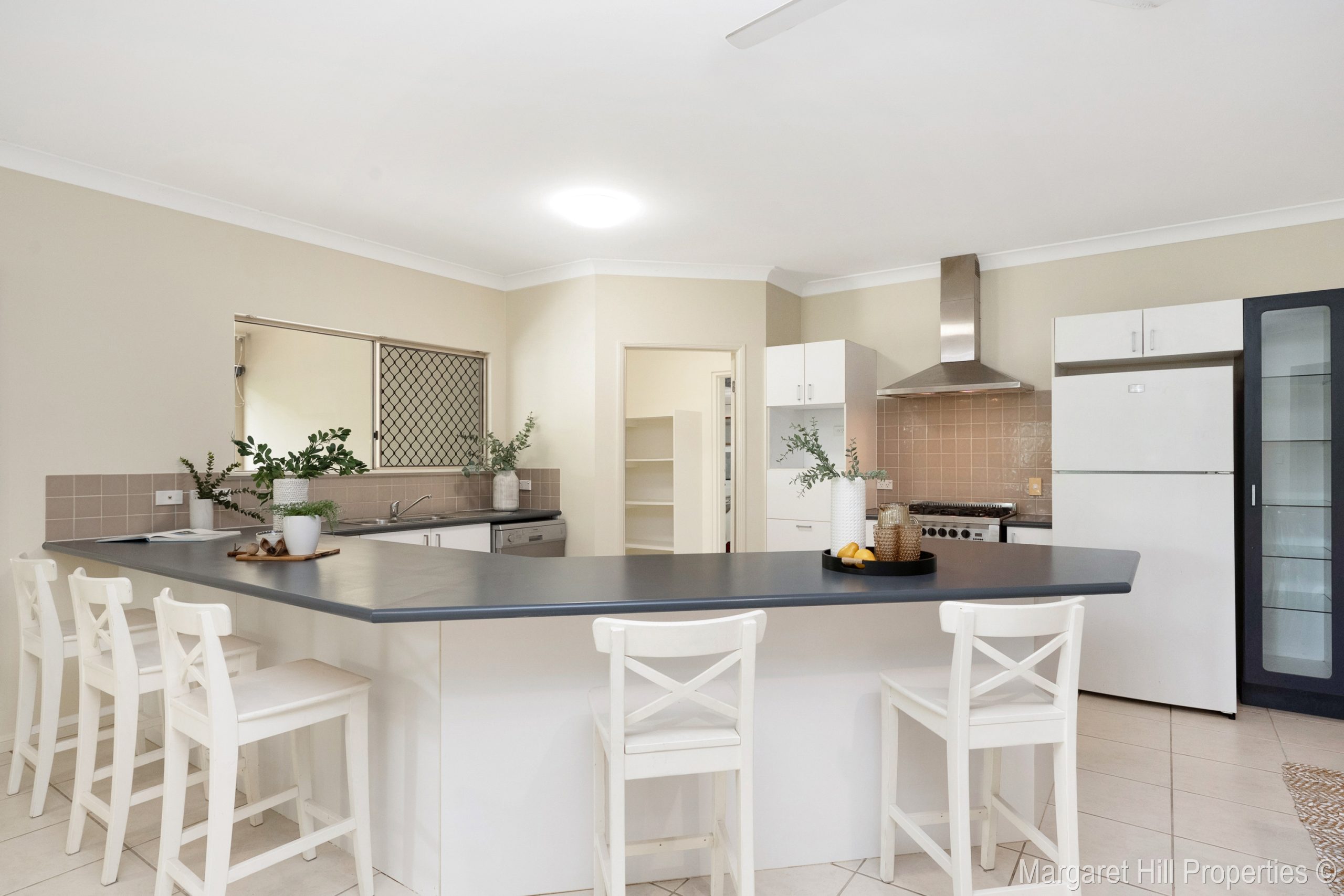 Central kitchen with walk-through pantry from double garage