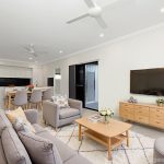 Embrace the seamless flow from the open-plan living area to a covered entertaining patio, leading further into a private yard. This thoughtful layout ensures that, whether you’re hosting a lively gathering or enjoying a quiet moment alone, the transition between indoor and outdoor spaces is effortless.