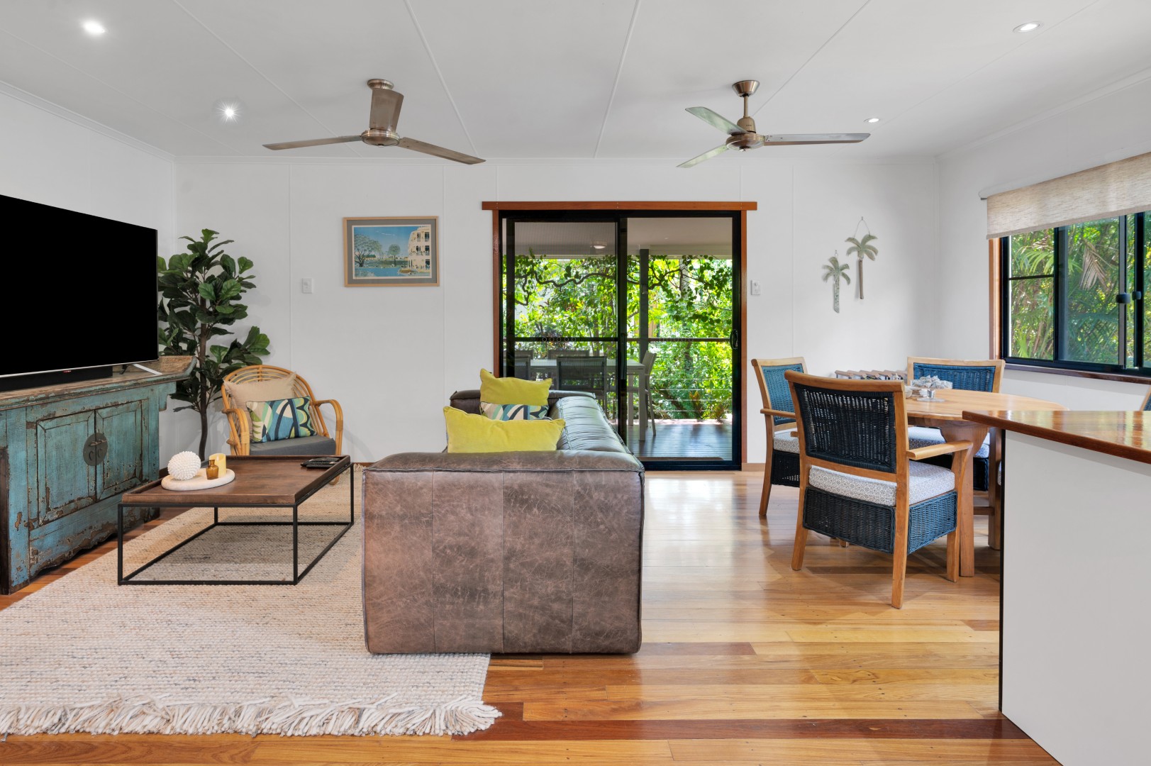 • Open plan living and dining with timber floors.