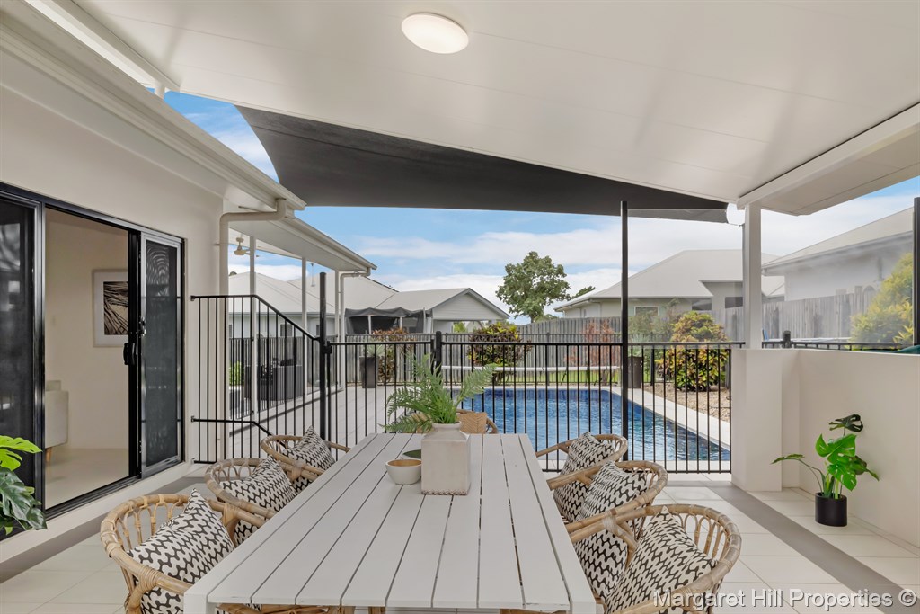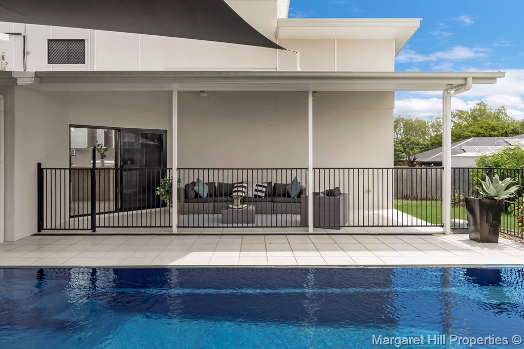 The 812 sqm block is a true entertainer’s paradise, with two tiled undercover areas ideal for gatherings or boat storage. A sparkling pool takes center stage, visible from the downstairs living areas, adding a touch of resort-style living. The fully fenced yard, double side gate access, and generous driveway provide ample space for all your needs.