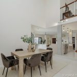 The heart of the home is its expansive open-plan living space. High ceilings and oversized windows bathe the interior in natural light, creating an inviting atmosphere. The interconnected layout of the dining, family, and kitchen areas flows effortlessly to multiple outdoor entertaining spaces, perfect for hosting friends or enjoying quiet family moments.