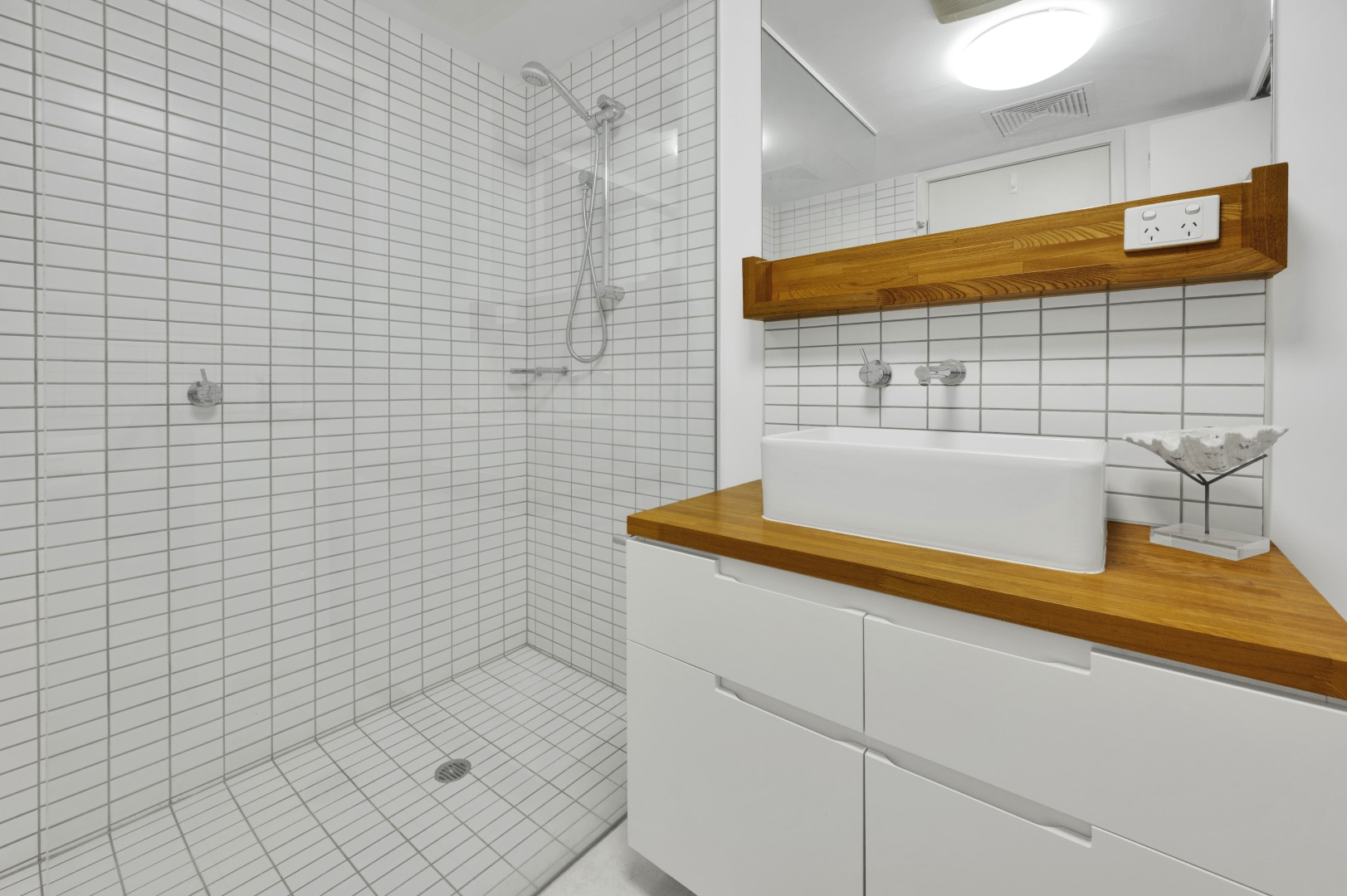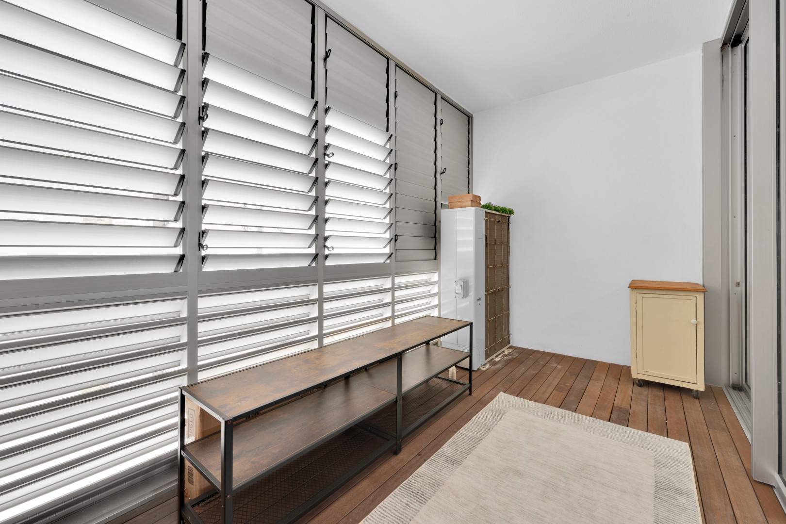• Fully enclosed wet room with floor to ceiling louvers and timber flooring gives you extra storage.