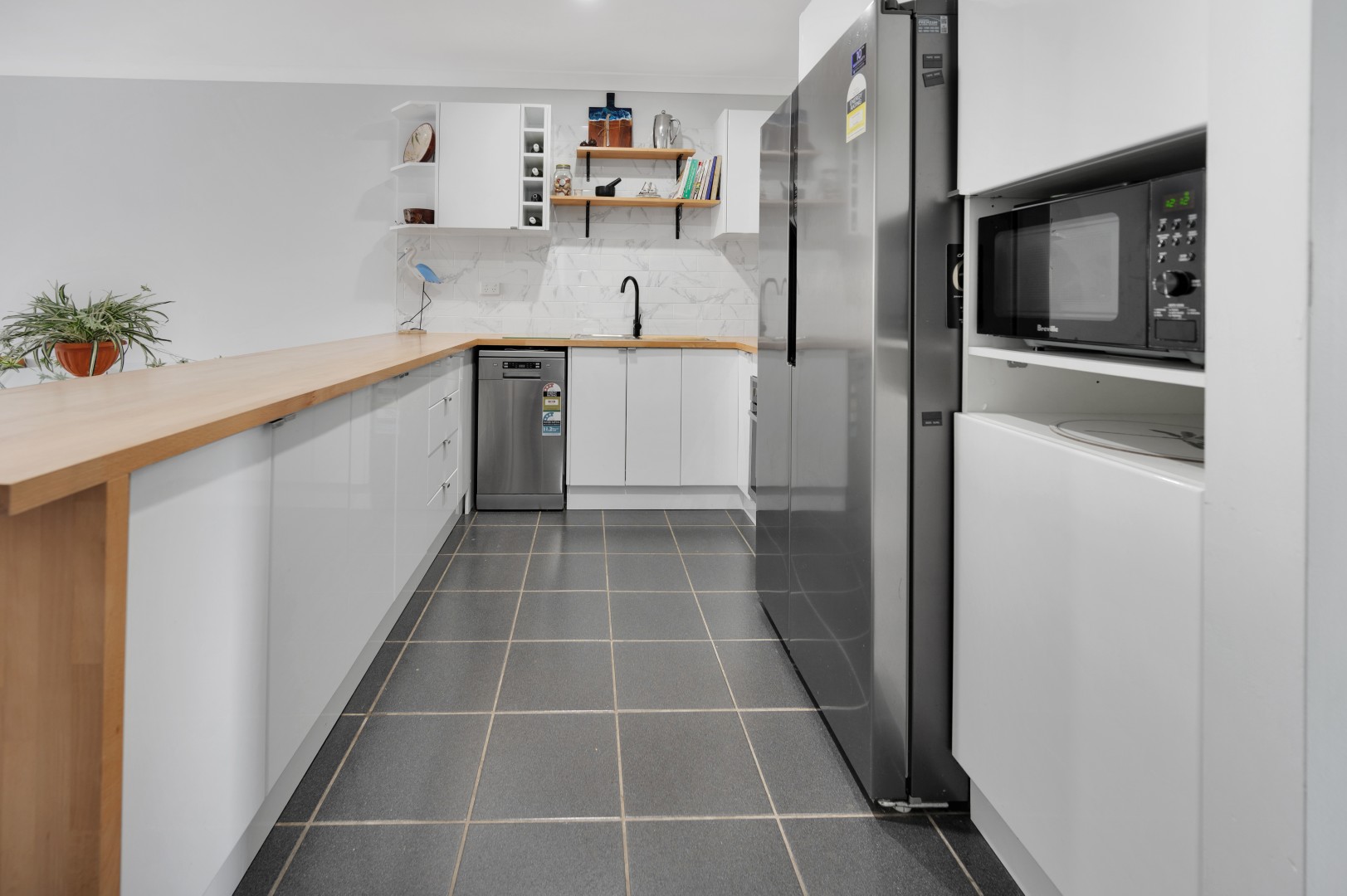 • Stylish kitchen that has been perfectly designed, with timber bench tops, dishwasher, wall oven, electric cooktop and rangehood.
