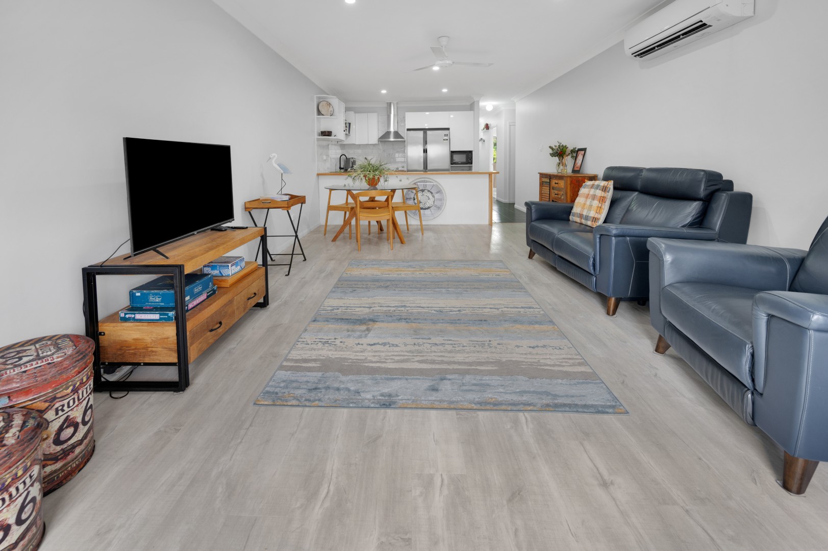 • Open plan living with timber look flooring in cool modern tones, fully airconditioned with led downlights and fans.