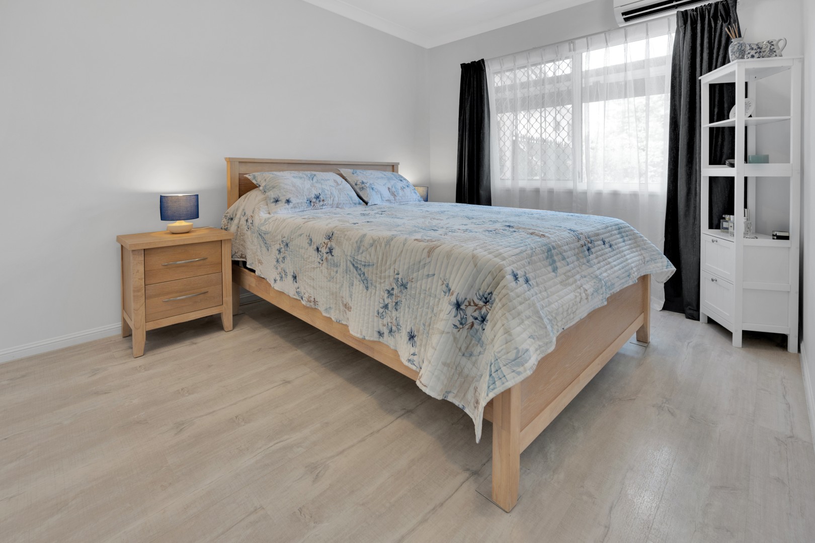 • Second bedroom is a generous size with sliding robes, air-conditioning, fan and timber look flooring.