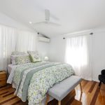 The master bedroom with an ensuite and large built in robes overlook the backyard with landscaped gardens and the pool.