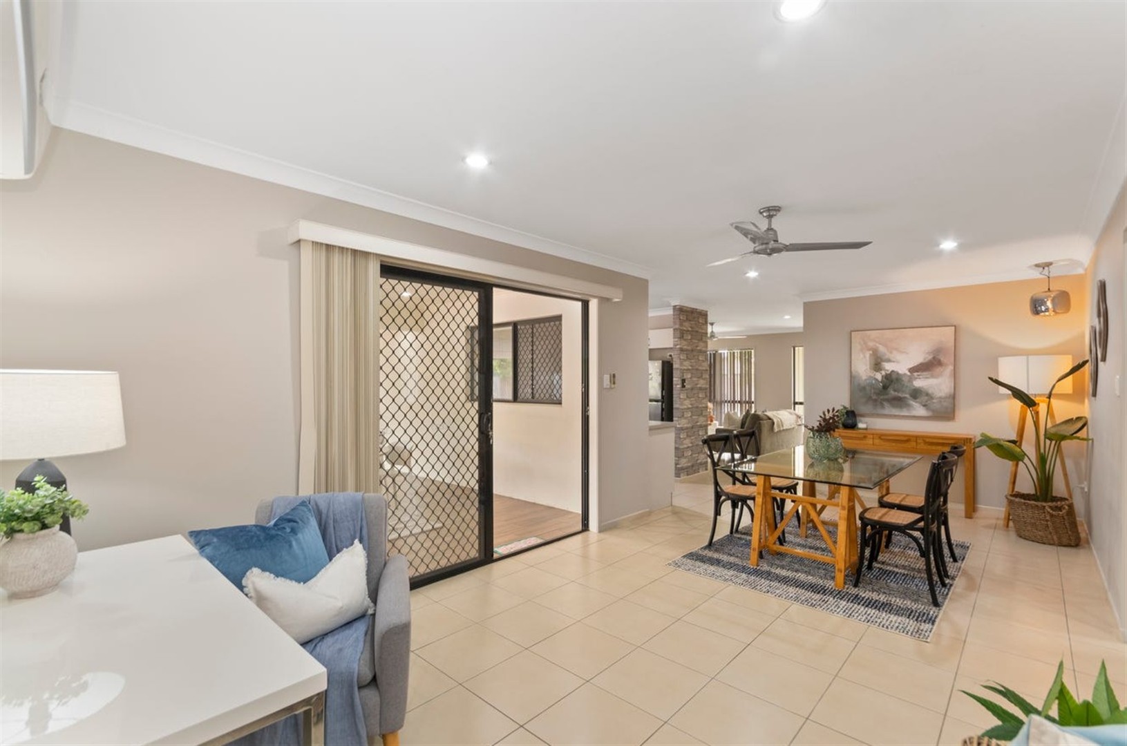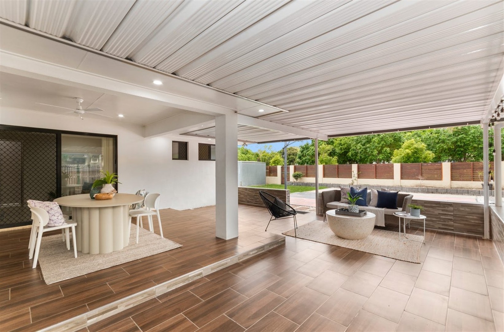 The heart of the home is the modern kitchen, which seamlessly connects to the open-plan living and dining areas, creating a perfect environment for everyday living and entertaining. Large windows and sliding doors enhance the sense of space and provide a smooth transition to the outdoors, where a generous covered entertaining area awaits. This outdoor space is ideal for hosting family gatherings, weekend barbecues, or simply relaxing while enjoying the private backyard.