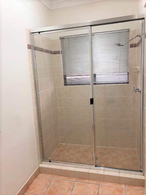 • Bathroom includes a step-in shower, vanity and separate toilet.