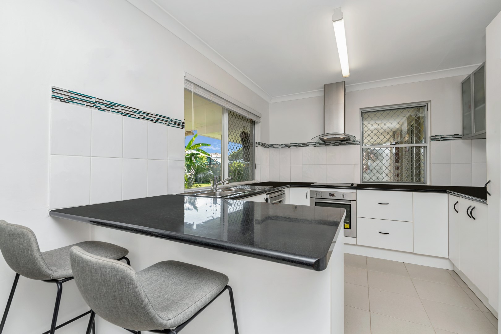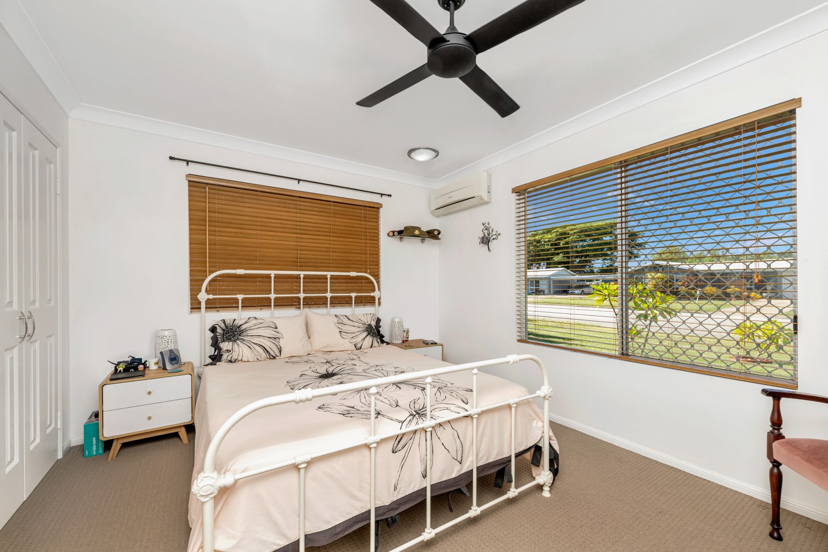 This home features three generous bedrooms, all equipped with built-in wardrobes and air-conditioning to ensure year-round comfort. The main bathroom is sleek and modern.