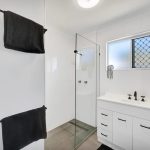 The bathroom features contemporary finishes, offering a clean, fresh look. It also includes a separate toilet, making this a practical and convenient space for families or shared living arrangements.