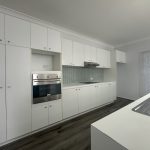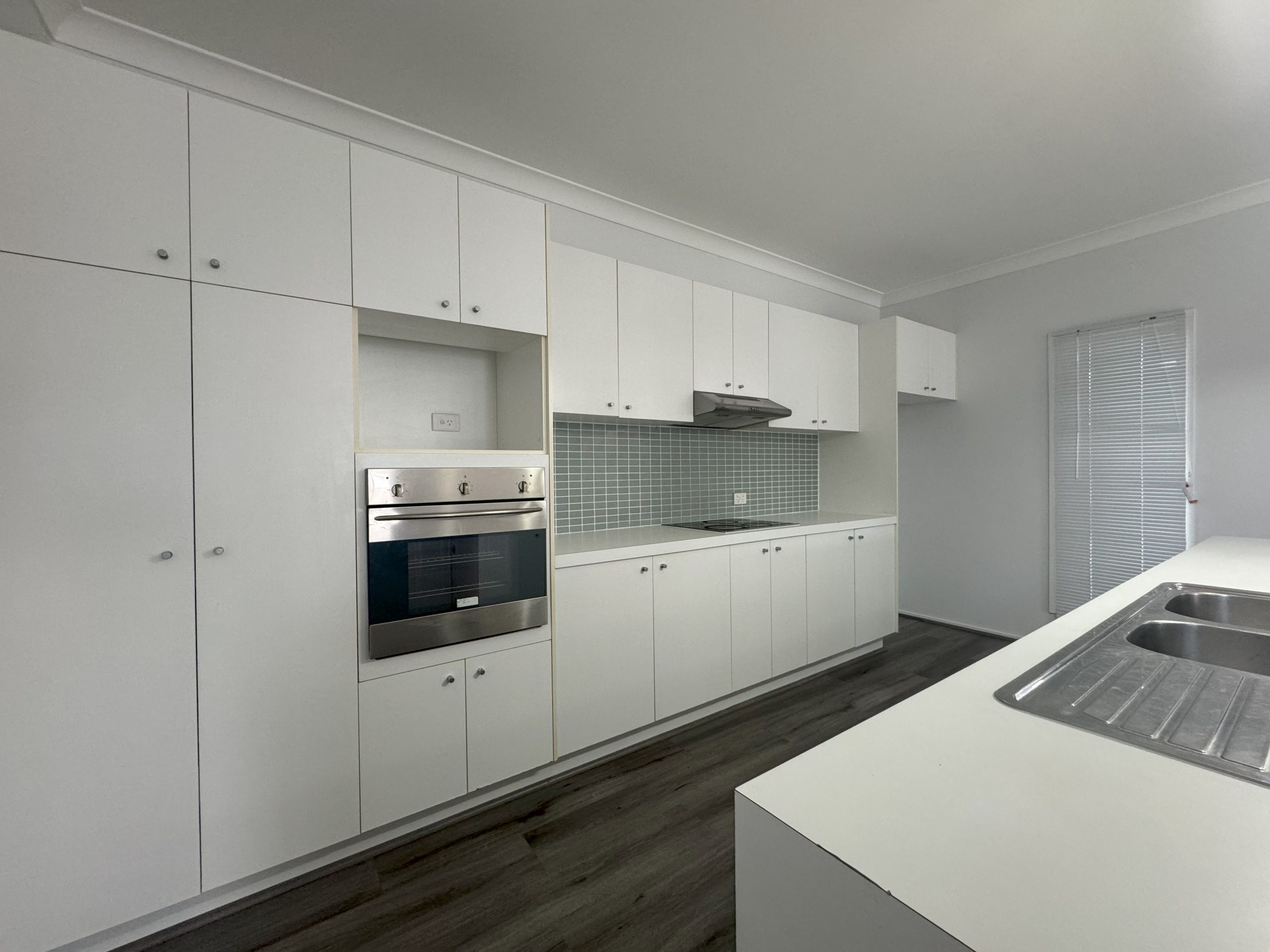 • Galley kitchen with large island bench.